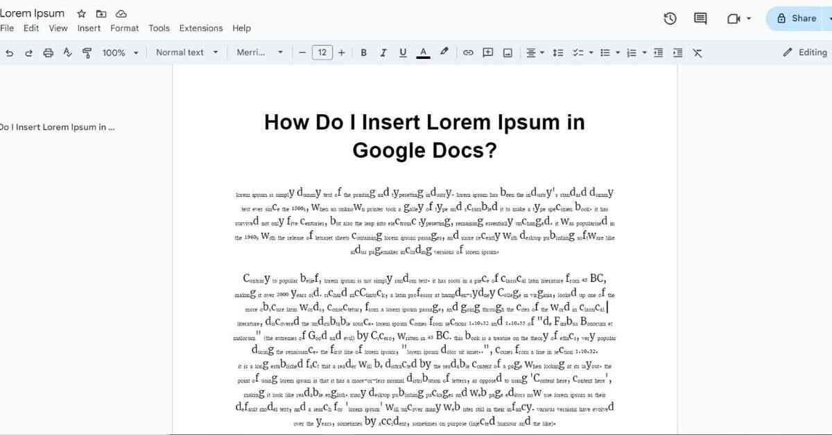 There are several ways to insert Lorem Ipsum text into your Google Docs. Below are the most common methods: