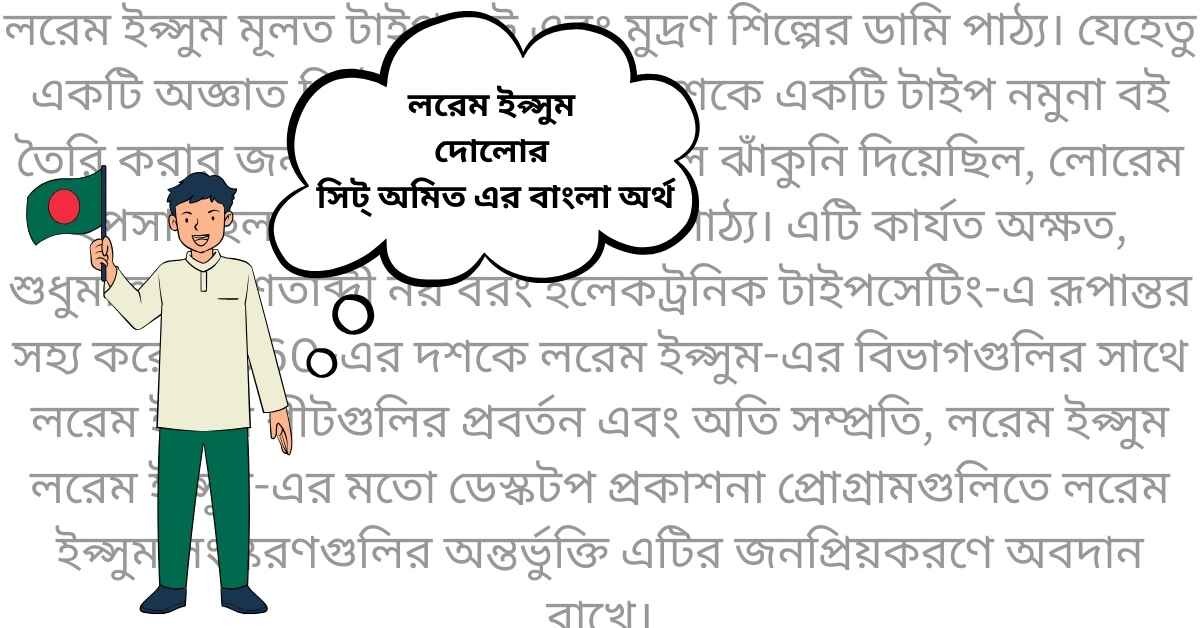 The phrase “Lorem ipsum dolor sit amet” does not have a straightforward meaning in Bengali because it is essentially nonsensical Latin text. However, if we translate it word by word: